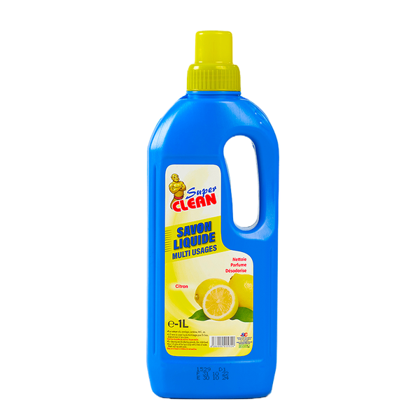 Découvrez notre savon liquide multi-usages Super Clean, parfumé au citron, idéal pour un nettoyage efficace et rapide. Sa formule dégraissante lutte contre les saletés tenaces. Parfait pour toutes les surfaces de la maison !