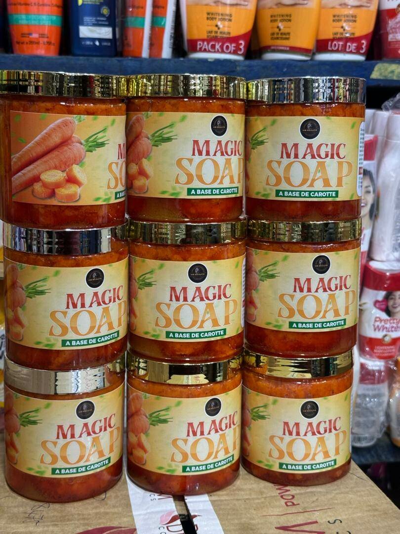 Découvrez le Savon Magique à base de carotte, idéal pour une peau éclatante et nourrie. Ce savon hydrate en profondeur et illumine votre teint pour un effet naturel. Parfait pour une utilisation quotidienne.