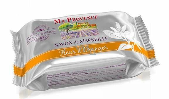 Découvrez le savon Ma Provence à la fleur d'oranger, sans conservateurs avec huiles essentielles. Idéal pour une peau douce et parfumée.(100g)