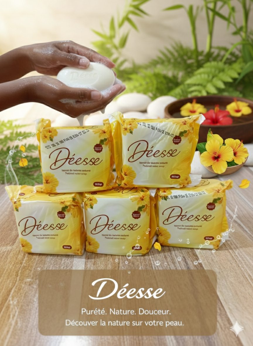 Découvrez la douceur naturelle avec le savon Déesse. Fabriqué à partir d'ingrédients purs pour une peau saine et éclatante. Parfait pour un usage quotidien.