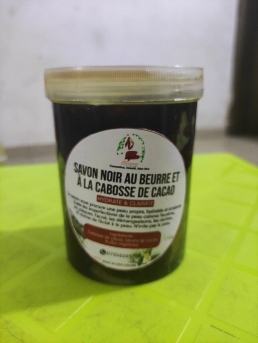 Notre savon noir formulé essentiellement avec le beurre, la poudre de cacao et enrichi au miel est disponible actuellement