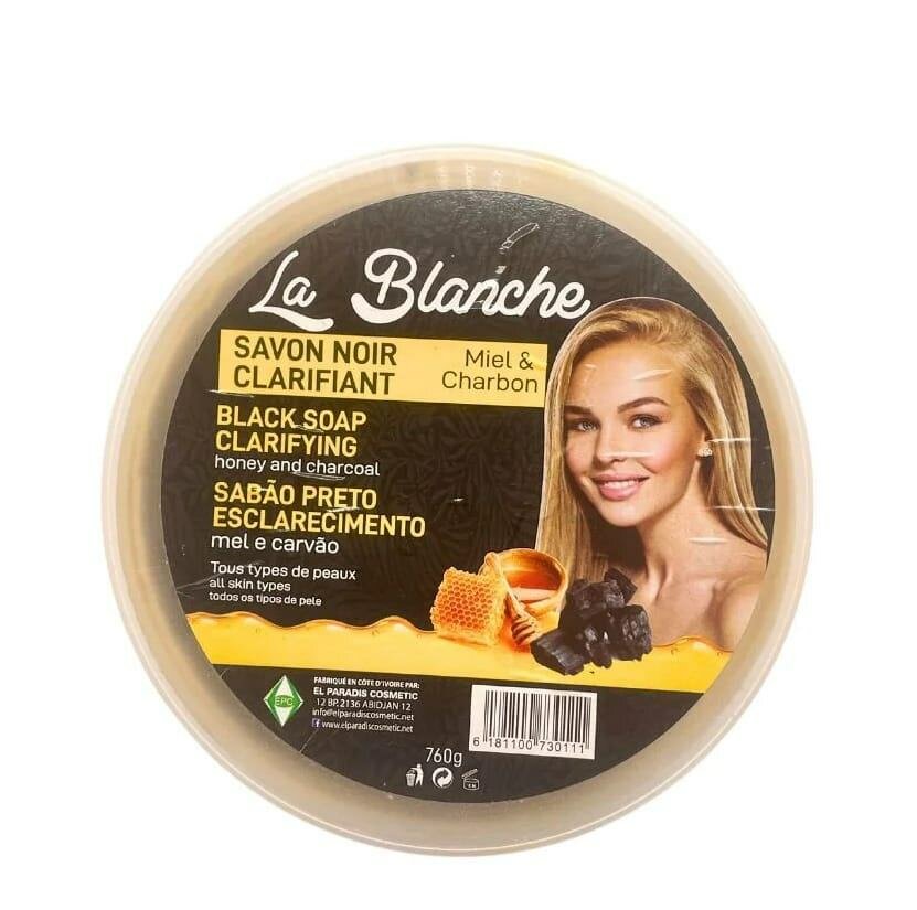 Découvrez l'efficacité du Savon Noir Clarifiant La Blanche au miel et charbon. Parfait pour tous types de peaux, il nettoie en profondeur et éclaircit votre teint naturellement. Idéal pour un usage quotidien, il vous offre une peau douce et éclatante.