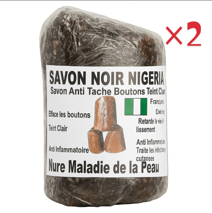 Savon noir du Nigeria pour une peau claire et sans imperfections. Anti-inflammatoire et antibactérien, il aide à traiter l'acné et les infections cutanées.
