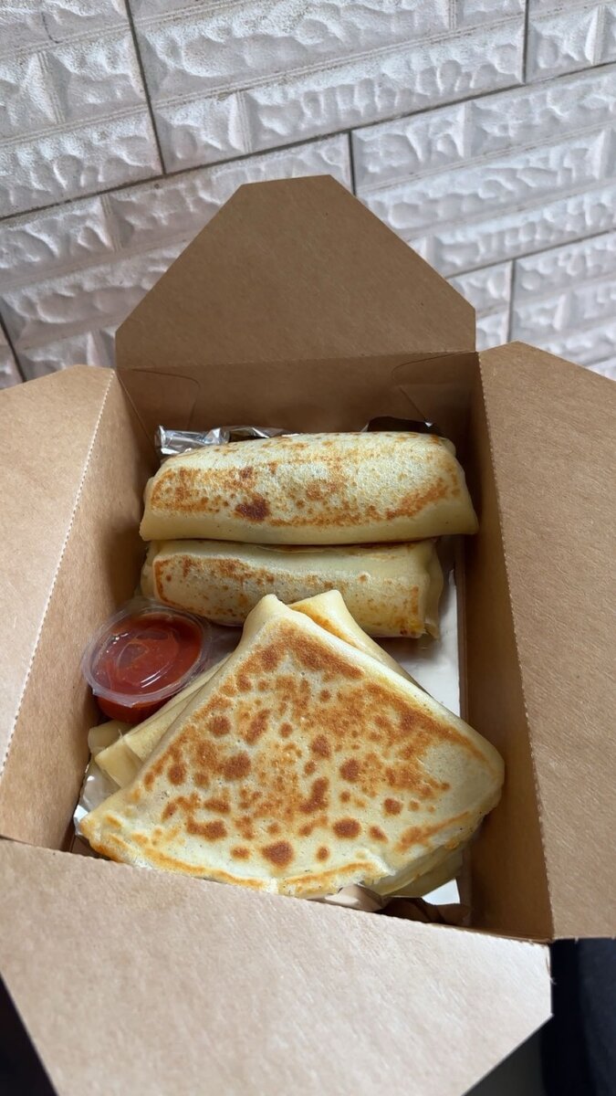 6 crêpes de 24 cm : jambon , poulet émincé, sauce béchamel & fromage, avec pot de sauce offert.
