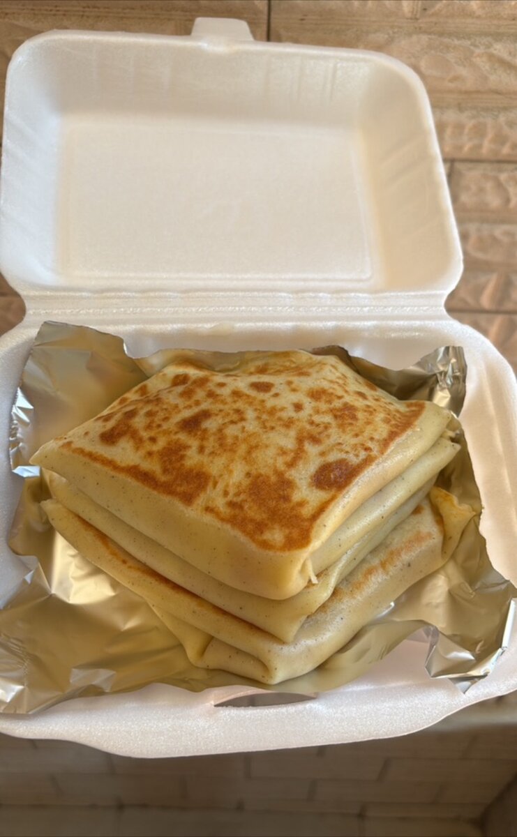 03 crêpes de 24 cm avec garniture au jambon de de bœuf, fromage et sauce béchamel.