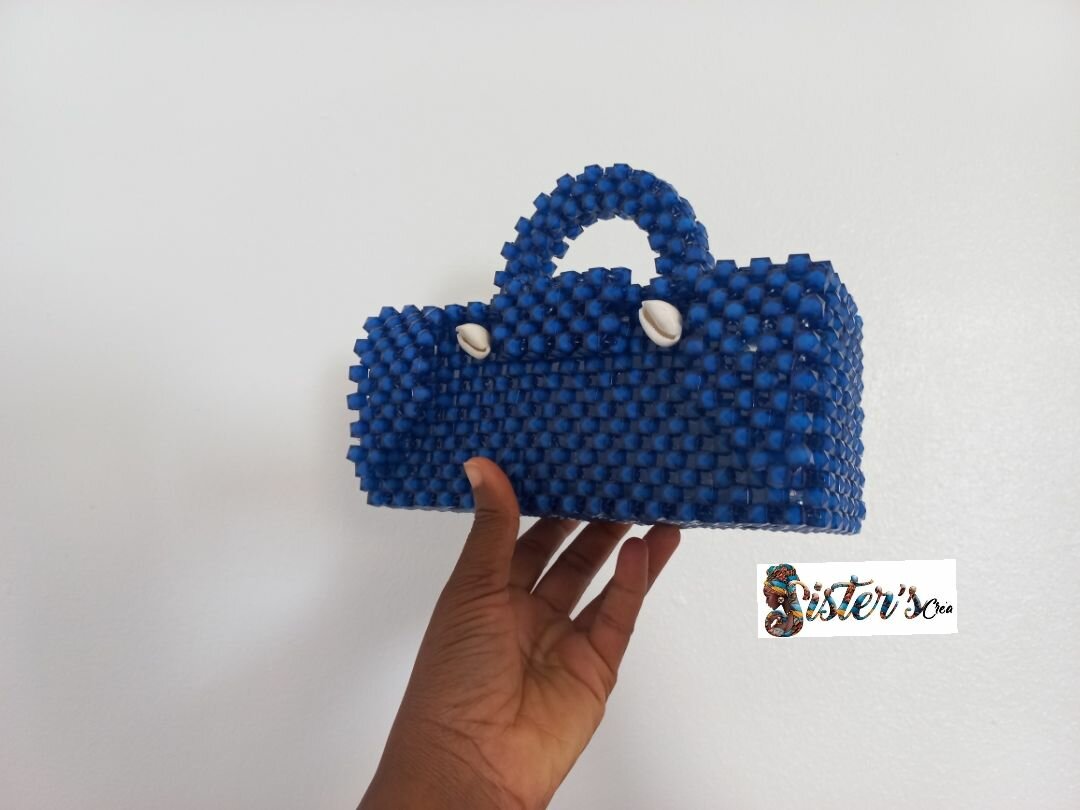 Découvrez ce magnifique sac à main bleu orné de perles et de coris , idéal pour les femmes élégantes. Fabriqué avec des matériaux de haute qualité, il est parfait pour des occasions spéciales ou une soirée chic.