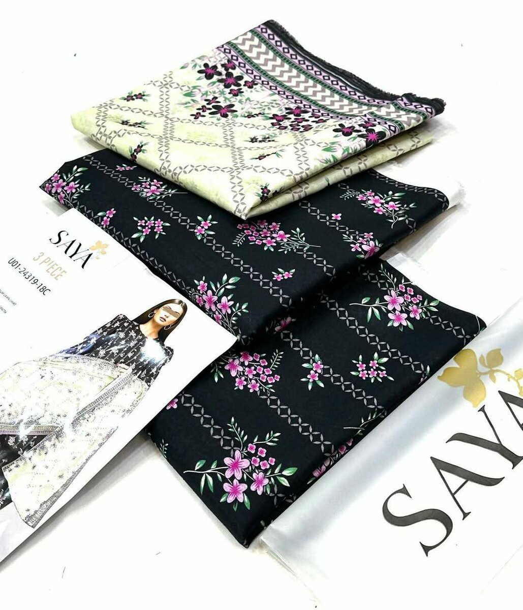 Saya Original 3pc Printed Lawn Collection Fabric Lawn Digital Printed All Over Lawn Shirt Same Printed Trouser Digital Printed Voil lawn Duppata Stuff N Colors Garenty Beautiful Color's Scheme OutClass Fabrics