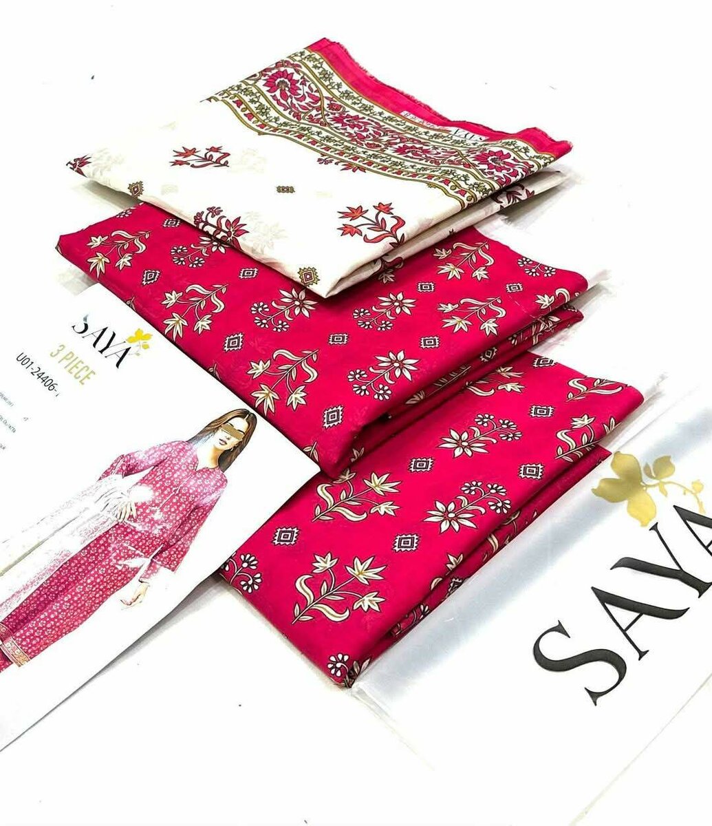Saya Original 3pc Printed Lawn Collection Fabric Lawn Digital Printed All Over Lawn Shirt Same Printed Trouser Digital Printed Voil lawn Duppata Stuff N Colors Garenty Beautiful Color's Scheme OutClass Fabrics