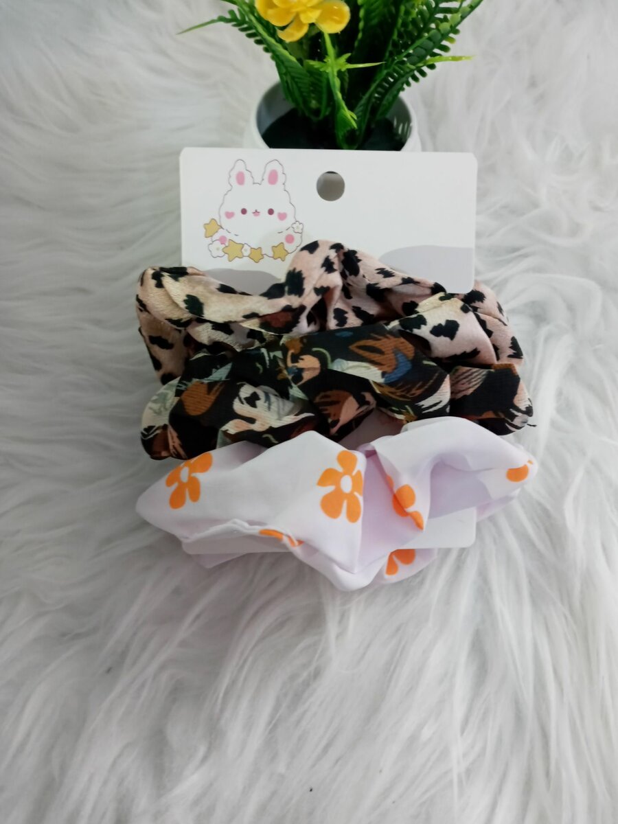 Three scunchies Colourful material