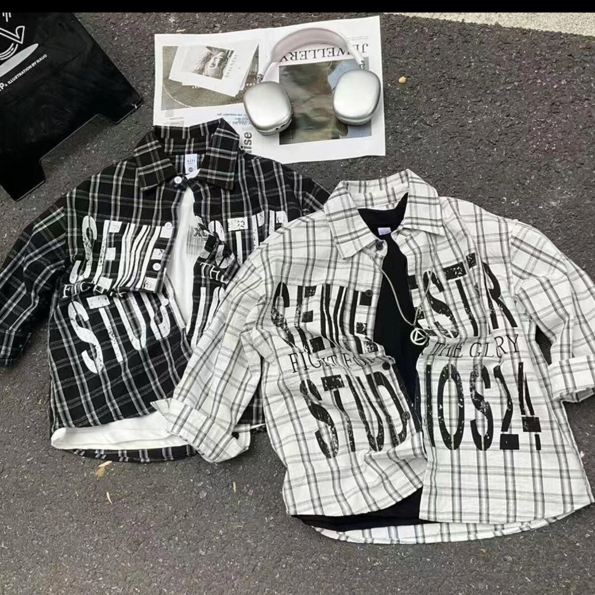 Ensemble mode homme avec chemise, jeans et accessoires
