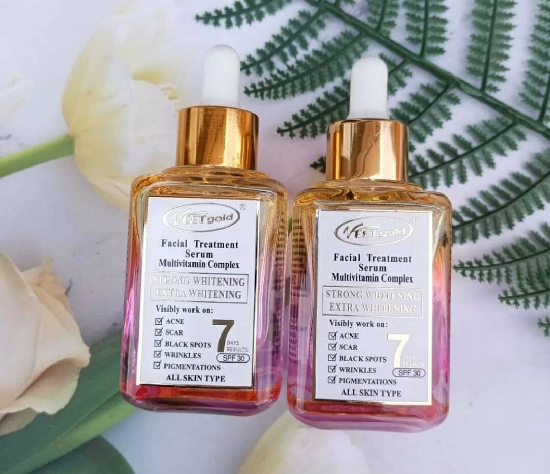 Veet gold serum blanchissant visage avec protection solaire. Fini les tâches, l'acné, cicatrices, les tâches d'hyperpigmentation, les rides. Livraison et expédition à vos frais.