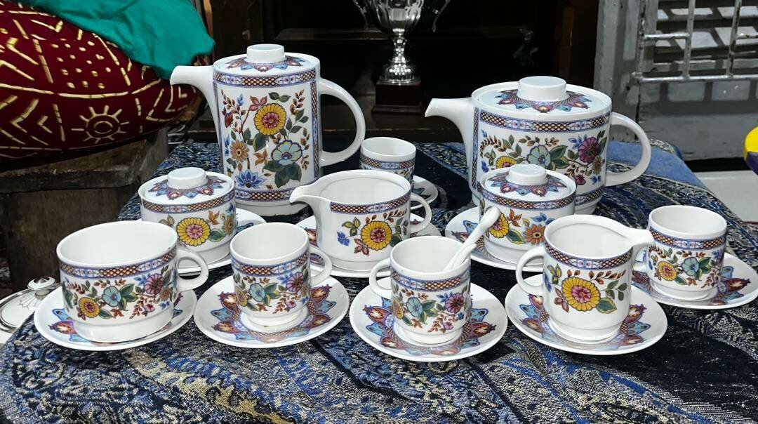 Apportez une touche d'élégance à votre table avec ce service à thé en porcelaine orné de motifs floraux colorés. Comprend théières, tasses et sous-tasses pour des moments de convivialité raffinés. Parfait pour les réceptions ou les moments de détente.
