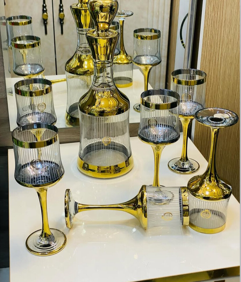 Service à vin en cristal doré