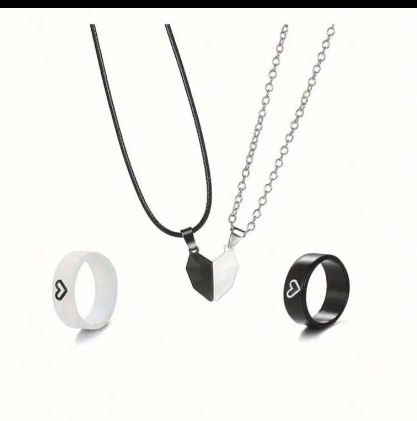 Ce set élégant pour couples comprend des colliers assortis et des bagues en acier inoxydable avec motif cœur. Parfait pour symboliser votre lien spécial. Un cadeau idéal pour célébrer les occasions spéciales avec votre moitié.