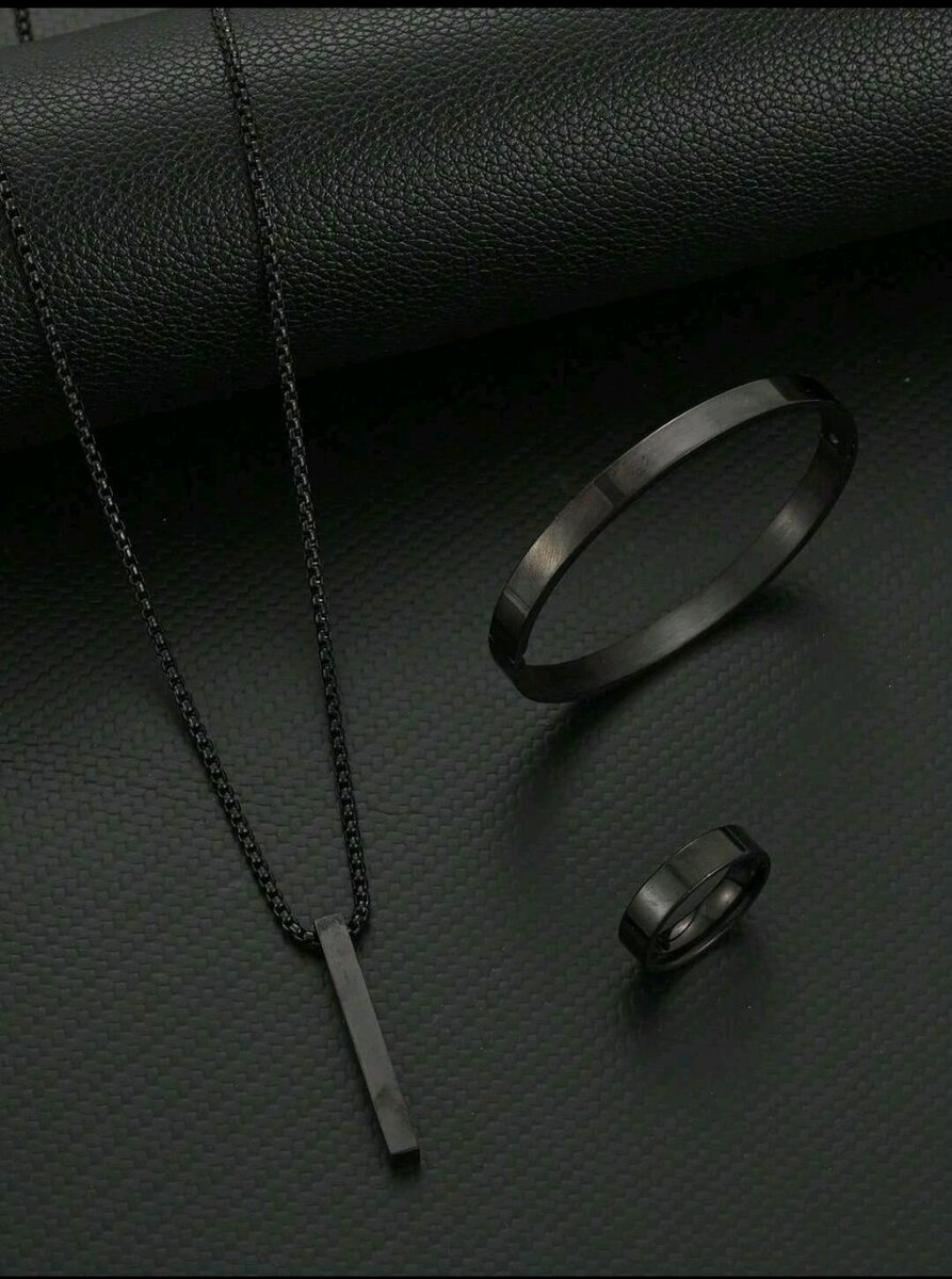 Élégant set de bijoux noir comprenant un collier, un bracelet et une bague. Parfait pour un style contemporain et audacieux. Idéal pour toutes occasions.