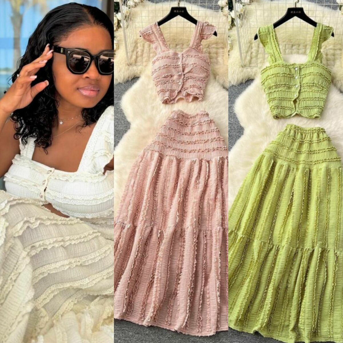Découvrez ce magnifique set d'été bohème composé d'un top et d'une jupe longue. Parfait pour les journées ensoleillées, ce set offre confort et style grâce à son tissu léger et sa coupe élégante. Disponible en plusieurs couleurs, il s'adapte à toutes les occasions estivales. Idéal pour vos sorties estivales, ce set est un must-have de la saison !