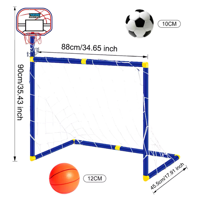 Transformez votre jardin en terrain de jeu ultime avec ce set combiné de basket et football pour enfants. Le produit comprend un panier de basket ajustable et un filet de football, idéaux pour les activités sportives extérieures. Parfait pour développer les compétences motrices et l'esprit d'équipe, ce set est facile à installer et durable. Dimensions optimales pour les petits athlètes en herbe.