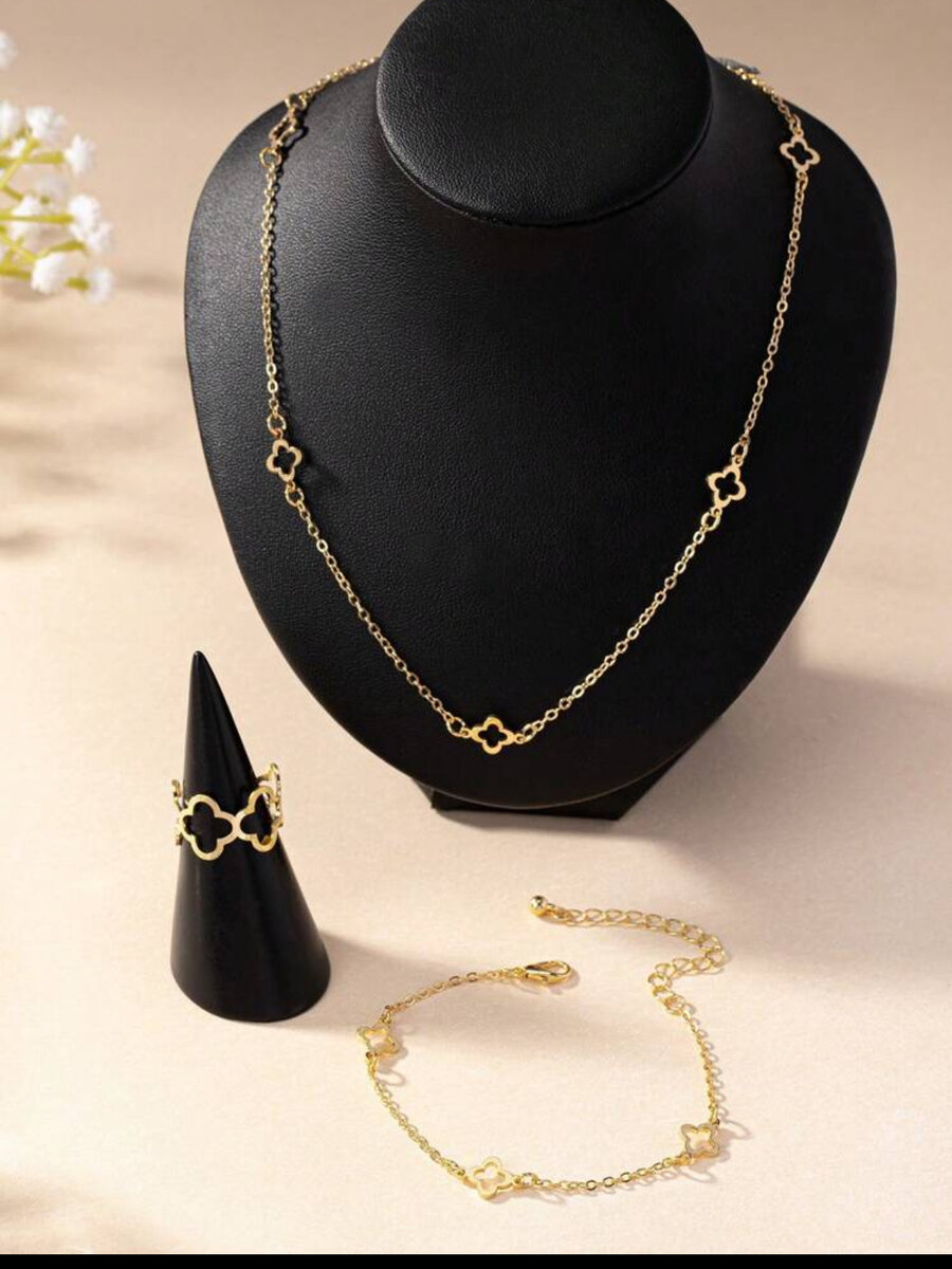 Découvrez ce magnifique set de bijoux dorés comprenant un collier, un bracelet et une bague. Parfait pour ajouter une touche d'élégance à n'importe quelle tenue. Idéal pour les occasions spéciales ou comme cadeau raffiné.