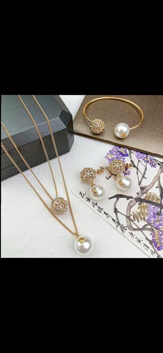 Sublimez votre style avec ce set de bijoux en perles dorées, comprenant collier, bracelet et boucles d'oreilles. Parfait pour ajouter une touche d'élégance à toute tenue. Idéal pour les occasions spéciales ou en cadeau.