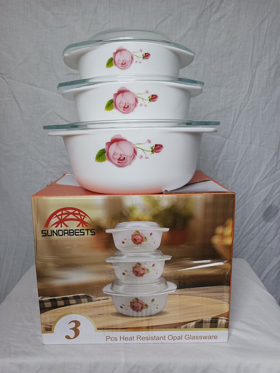 Découvrez ce magnifique ensemble de trois bols en verre opale résistant à la chaleur de Sundabests. Parfait pour cuisiner au micro-ondes, servir à table ou conserver vos préparations, chaque bol est orné de délicates fleurs. Idéal pour les repas en famille ou entre amis. Ajoutez une touche d'élégance à votre cuisine!