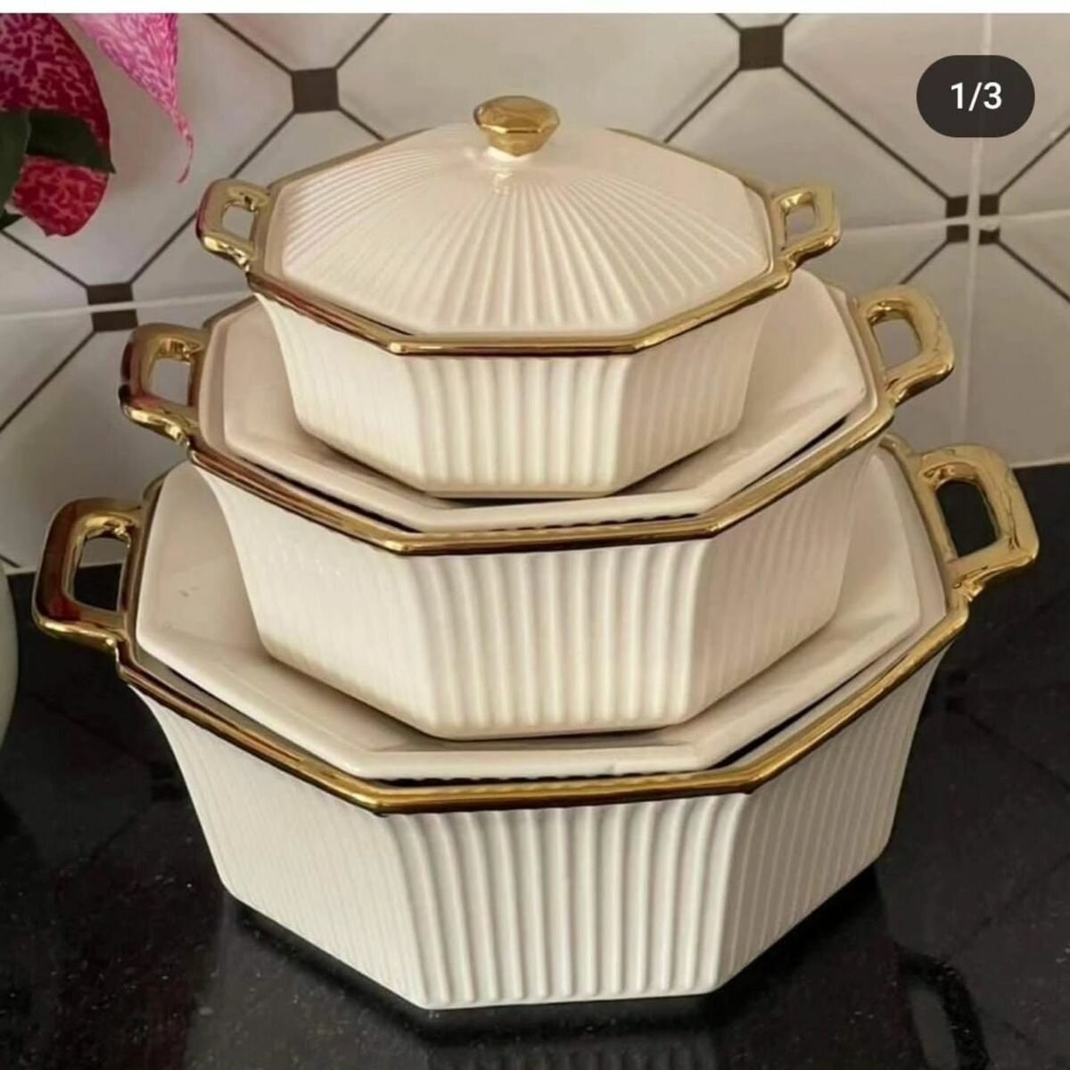 Ce magnifique set de casseroles en céramique est parfait pour les amateurs de cuisine raffinée. Doté d'un design moderne avec des poignées dorées, il ajoutera une touche d'élégance à votre cuisine. Idéal pour préparer et servir vos plats préférés avec style. Polyvalent et durable, un choix parfait pour les dîners et réceptions.