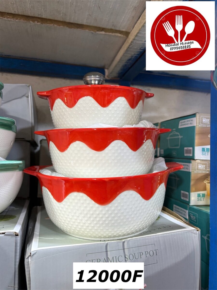 Améliorez votre cuisine avec cet élégant set de casseroles en céramique. Parfait pour la cuisson et le service des repas, avec un design attrayant rouge et blanc. Idéal pour toute cuisine moderne.