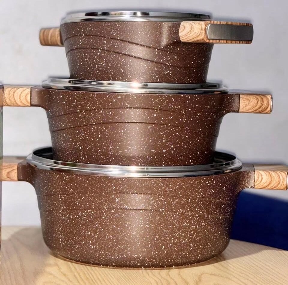 Ce set de trois casseroles en granite avec des diamètres de 20 cm, 24 cm et 28 cm, est idéal pour tous types de préparations culinaires. Grâce à leur construction robuste et leur design élégant, elles assurent une répartition uniforme de la chaleur, parfaite pour mijoter, frire ou bouillir. Les poignées en bois ajoutent une touche de style.