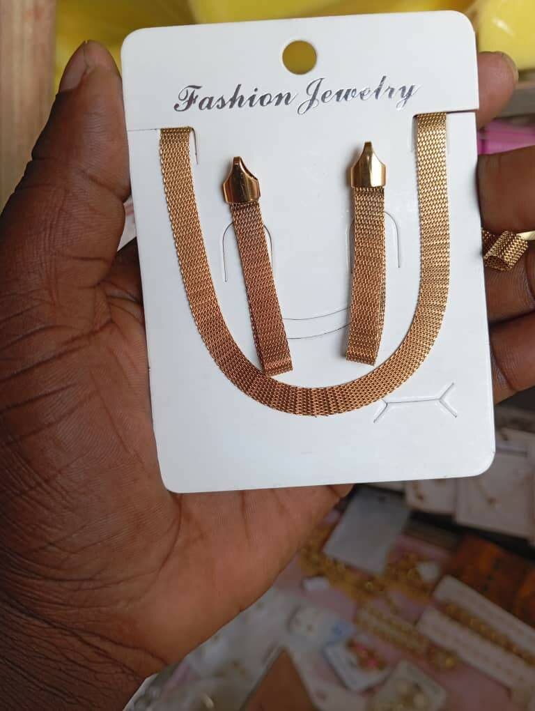 Élégant ensemble de collier et boucle d'oreilles dorés, idéal pour sublimer vos tenues.
