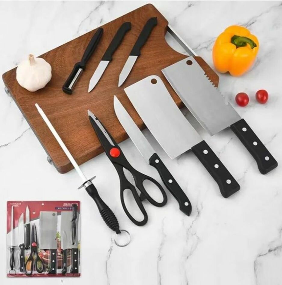 Découvrez le set de 8 pièces, votre allié incontournable pour toutes vos préparations culinaires. Fabriqué en acier inoxydable de haute qualité, il comprend des outils de chef utilitaires, Parfait pour trancher et hacher avec précision.
