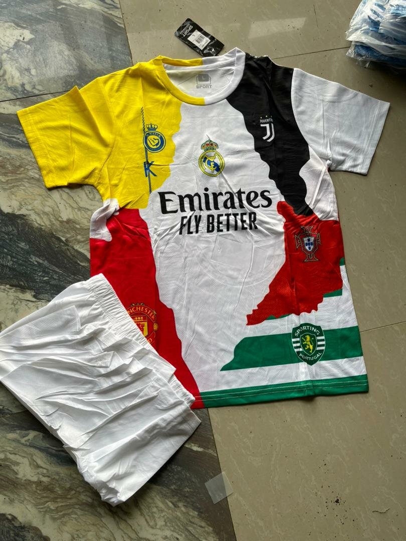 Ensemble de football unique avec les logos de clubs célèbres. Tissu respirant, idéal pour les matchs et l'entraînement. Soyez au top de votre performance avec style.
