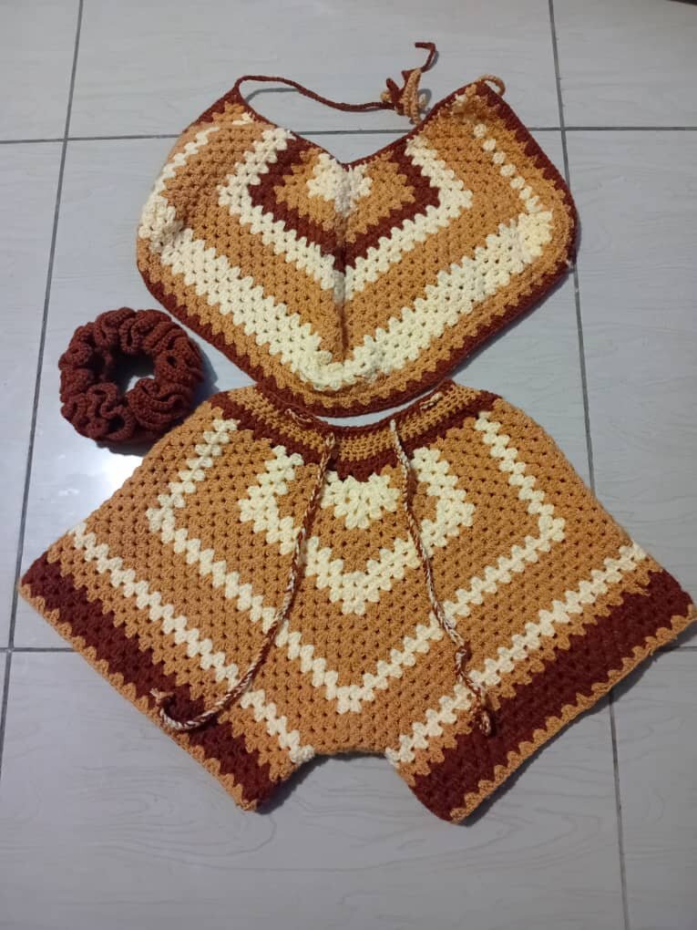 Découvrez ce magnifique ensemble de plage crocheté à la main, idéal pour l'été. Composé d'un haut dos nu et d'un short assorti, il offre confort et style. Parfait pour les journées ensoleillées à la plage ou à la piscine. Fabriqué avec des matériaux doux pour un maximum de confort. Ajoutez une touche unique et tendance à votre garde-robe estivale.