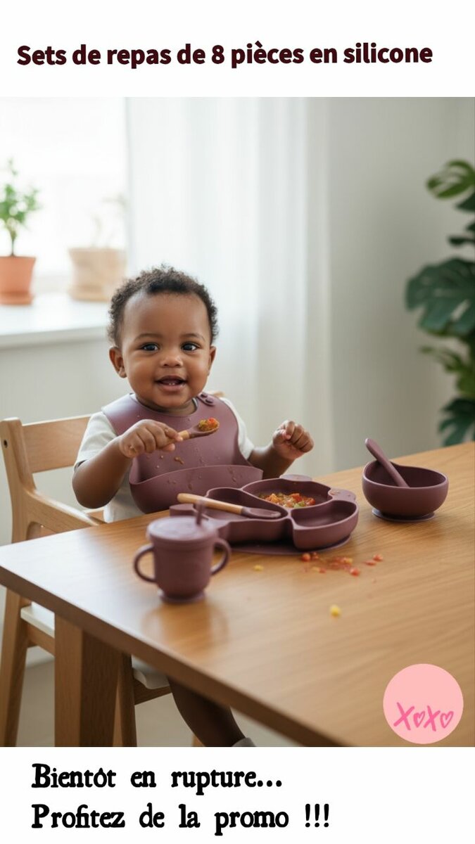Offrez à votre bébé un repas agréable et sécurisé avec ce set de 8 pièces en silicone. Parfait pour les tout-petits, ce set est idéal pour encourager l'autonomie. Les matériaux en silicone sont doux, résistants et faciles à nettoyer. Idéal pour la maison ou les sorties, profitez de son design moderne et pratique.