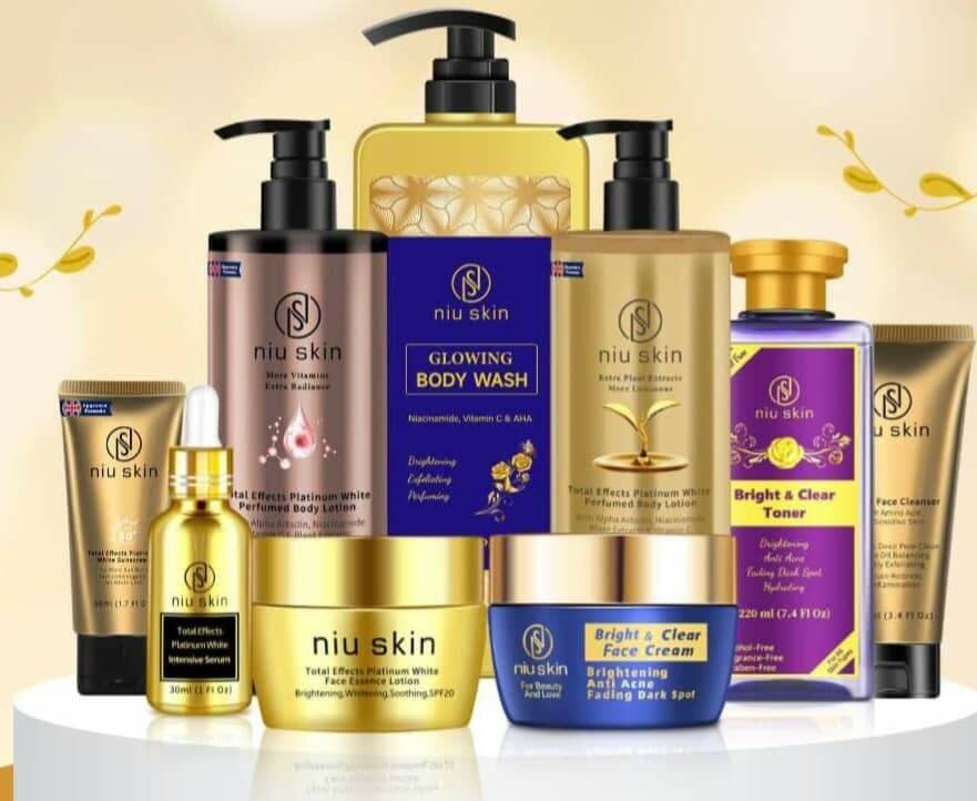 Découvrez le set complet de soins visage et corps Niu Skin. Nettoyants, crèmes hydratantes et sérums pour une peau éclatante et revitalisée. Parfait pour tous les types de peau.