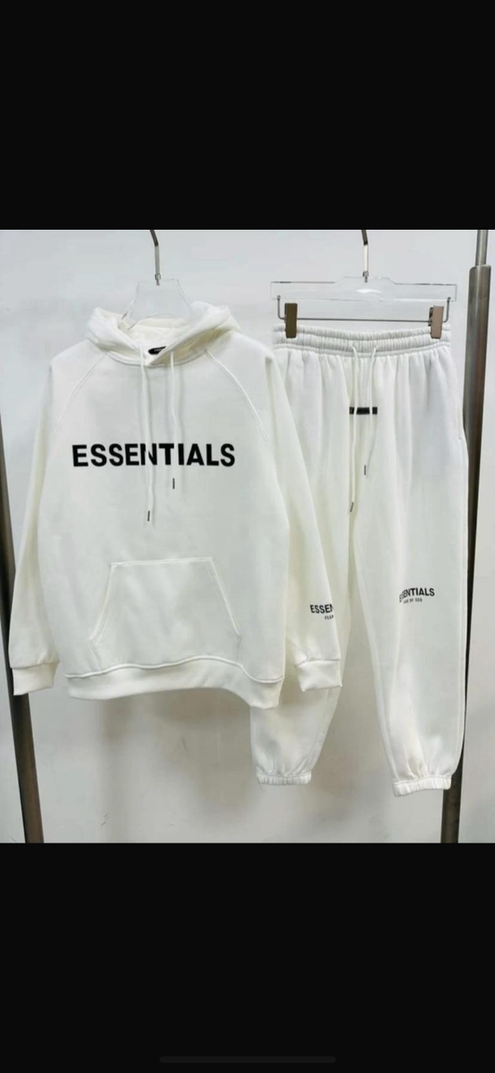 Découvrez ce set de survêtement Essentials en blanc, idéal pour un look décontracté et moderne. Confort garanti avec une coupe ajustée et des matériaux doux.