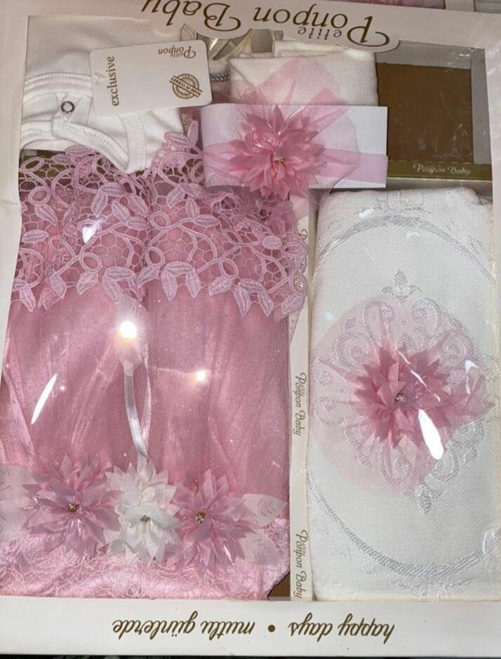 Ce magnifique ensemble pour bébé en blanc et rose est parfait pour une occasion spéciale. Fabriqué avec des matériaux de haute qualité, il comprend une robe élégante, des chaussures assorties, et des accessoires délicats. Offrez à votre bébé le confort et le style qu'il mérite, idéal pour baptêmes ou célébrations.