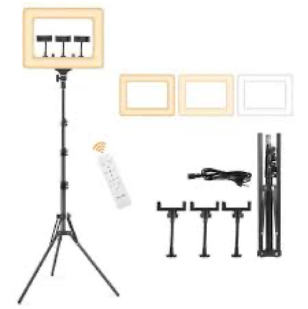 Améliorez vos vidéos avec ce set d'éclairage LED 18 pouces. Comprend un trépied réglable, une télécommande pratique, et un support pour smartphone. Parfait pour le streaming en direct et la photographie. Charge USB incluse.