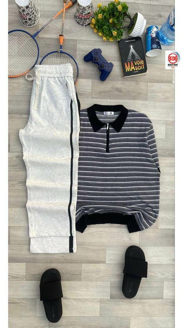 Découvrez notre ensemble décontracté pour homme, parfait pour un style quotidien. Comprend un polo rayé et un pantalon confortable, idéal pour vos activités de loisirs. Style moderne et confort assuré.