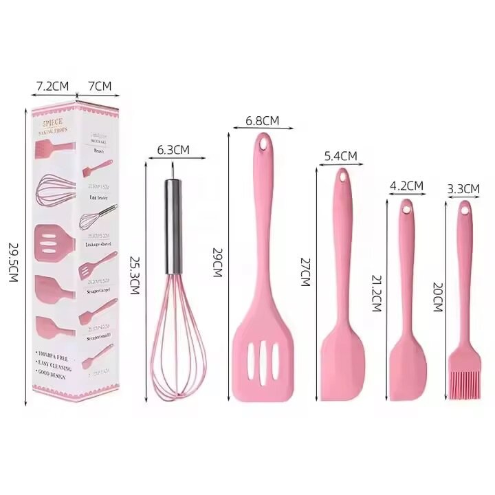 Élevez vos créations culinaires avec ce set d'ustensiles de pâtisserie en silicone rose. Comprend une spatule ajourée, une spatule plate, un fouet, une brosse, et une spatule à glaçage. Sans BPA, résistant à la chaleur, idéal pour les amateurs de pâtisserie et la cuisson au quotidien. Offrez-vous la perfection pâtissière!