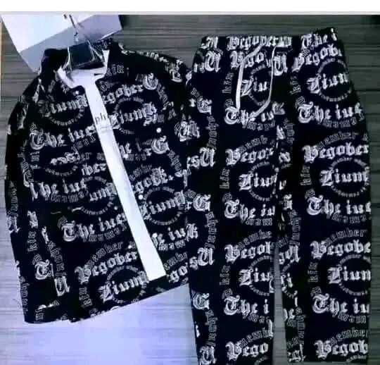 Découvrez ce set urbain audacieux avec veste et pantalon, orné de motifs textuels uniques. Parfait pour les amateurs de mode urbaine, il offre confort et style distinctif pour toutes occasions décontractées.