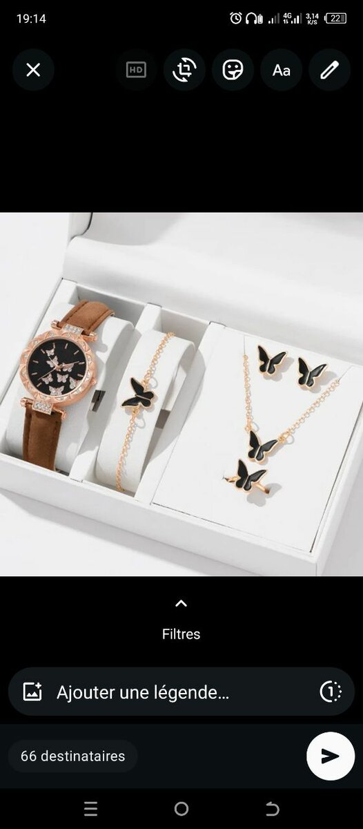 Élevez votre style avec ce magnifique ensemble montre et bijoux papillon. Parfait pour les femmes élégantes, il inclut une montre élégante ainsi que des boucles d'oreilles, un collier et un bracelet assortis. Idéal pour toute occasion spéciale ou pour ajouter une touche chic à votre quotidien.