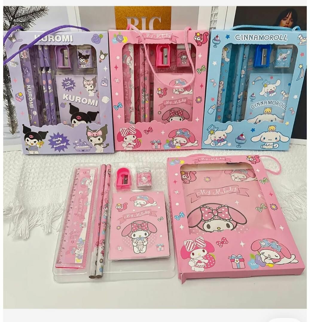 Un set de papeterie adorable avec des personnages populaires, idéal pour les enfants. Comprend des stylos, une règle et une gomme. Parfait pour l'école et les loisirs.