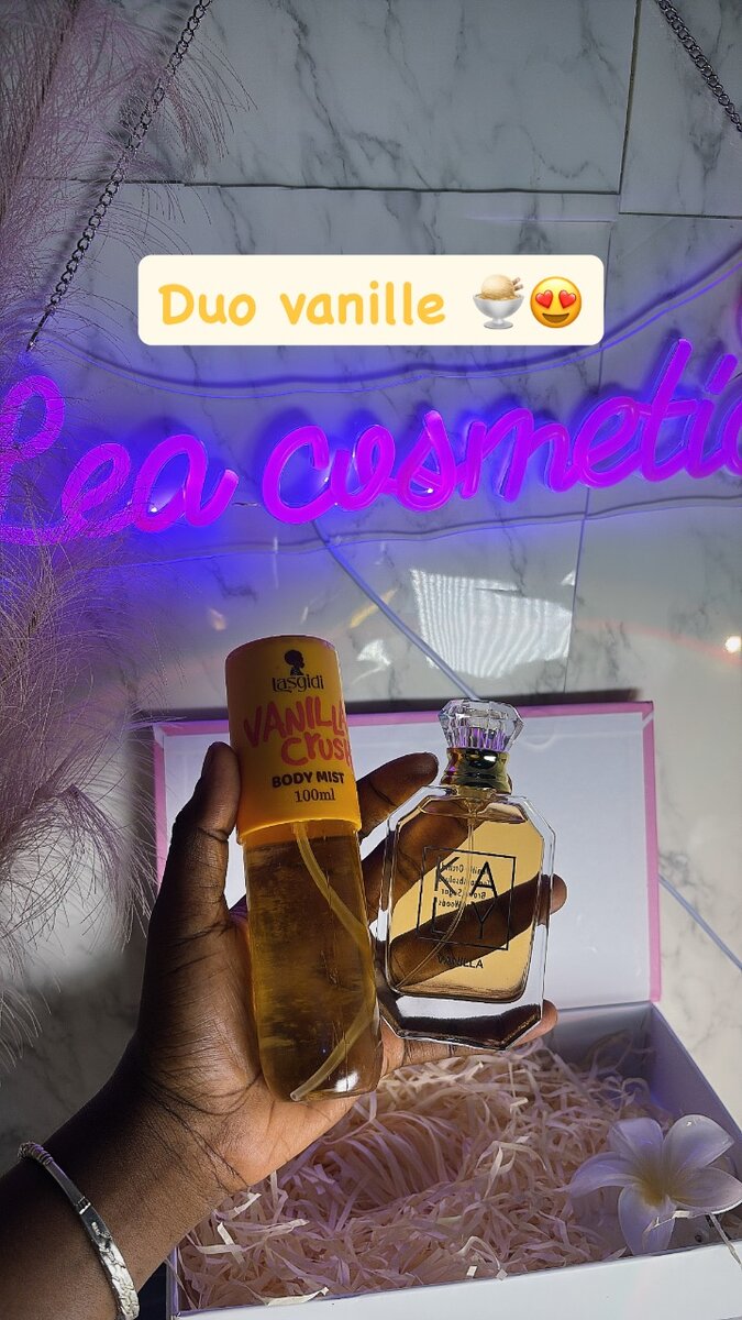 Découvrez le duo parfum et brume "Vanille Cyus" de KA. Une fragrance envoûtante pour sublimer votre quotidien avec des notes douces et apaisantes de vanille. Idéal pour les amoureux des senteurs sucrées, ce set est parfait pour toutes les occasions, qu'il s'agisse d'une sortie spéciale ou d'une journée décontractée. Apportez une touche de luxe à votre routine beauté.