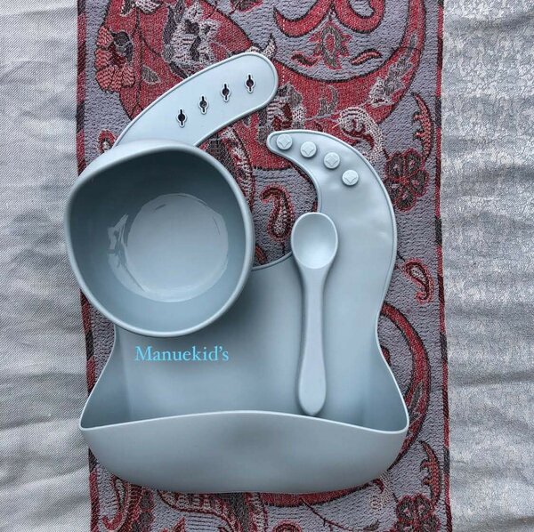 Ce set repas en silicone pour bébé est idéal pour les repas des tout-petits. Composé d'une assiette, d'un bol, d'une fourchette, d'une cuillère et d'un bavoir, il est parfait pour les repas quotidiens. Le matériau en silicone est sans BPA et facile à nettoyer. Idéal pour une utilisation à la maison ou en déplacement, ce set rend les repas amusants et pratiques pour votre enfant.