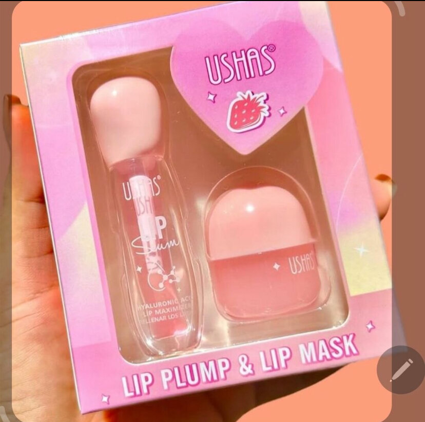 Rendez vos lèvres pulpeuses et hydratées avec le set Ushas. Comprend un brillant repulpant et un masque hydratant pour un soin complet. Parfait pour un look glamour au quotidien.