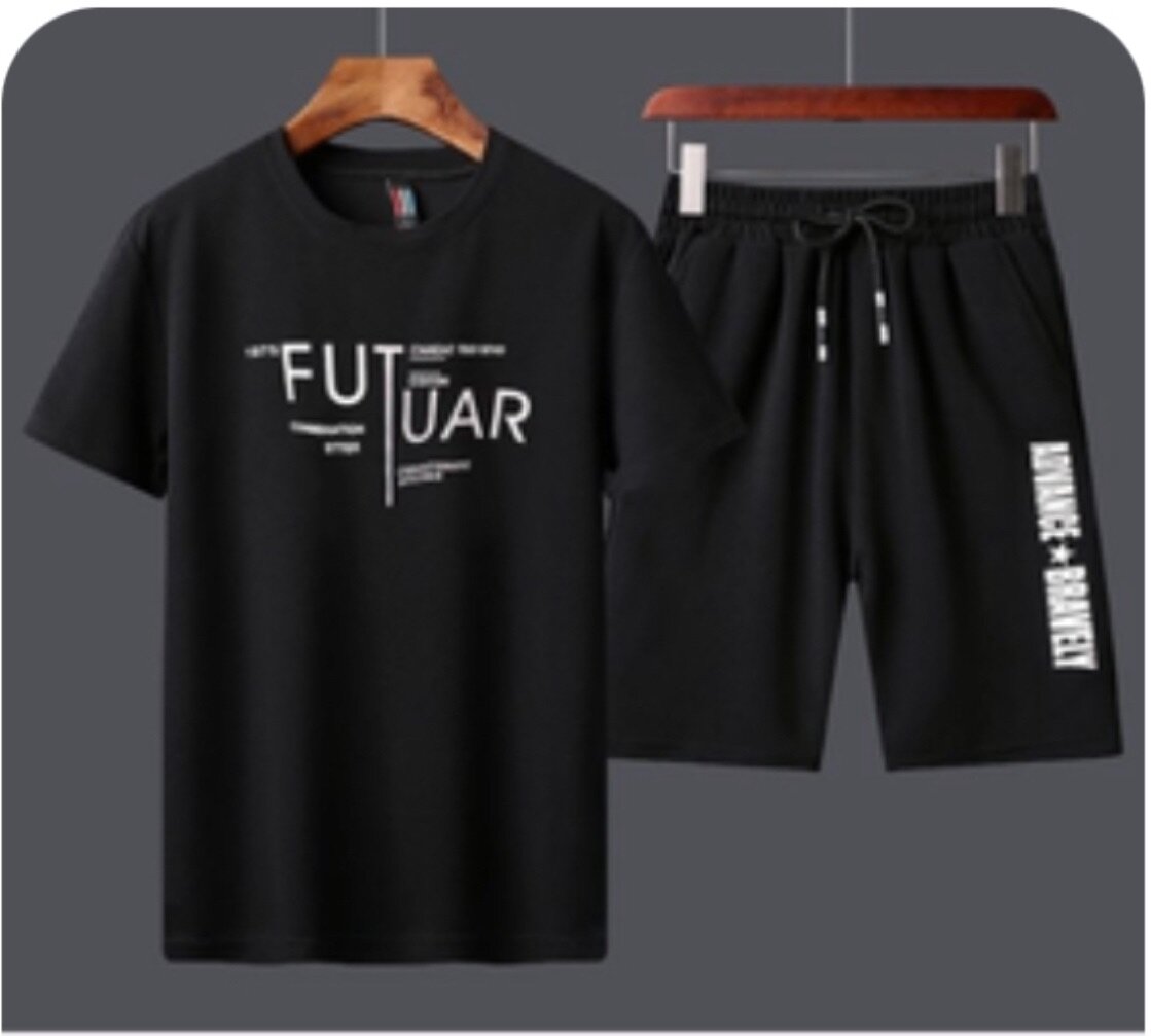 Fashion 2 In 1 Short Sleeve T-Shirt & Shorts Set - Black