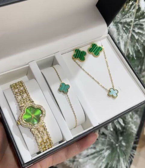 Комплект красивых украшений с часами
