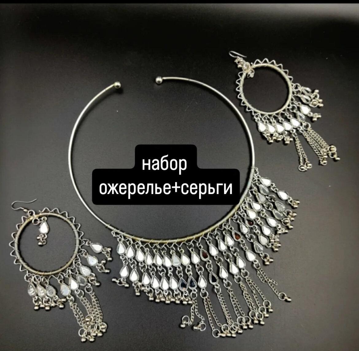 Набор ожерелье + серьги материал: мельхиор+ зеркальные вставки