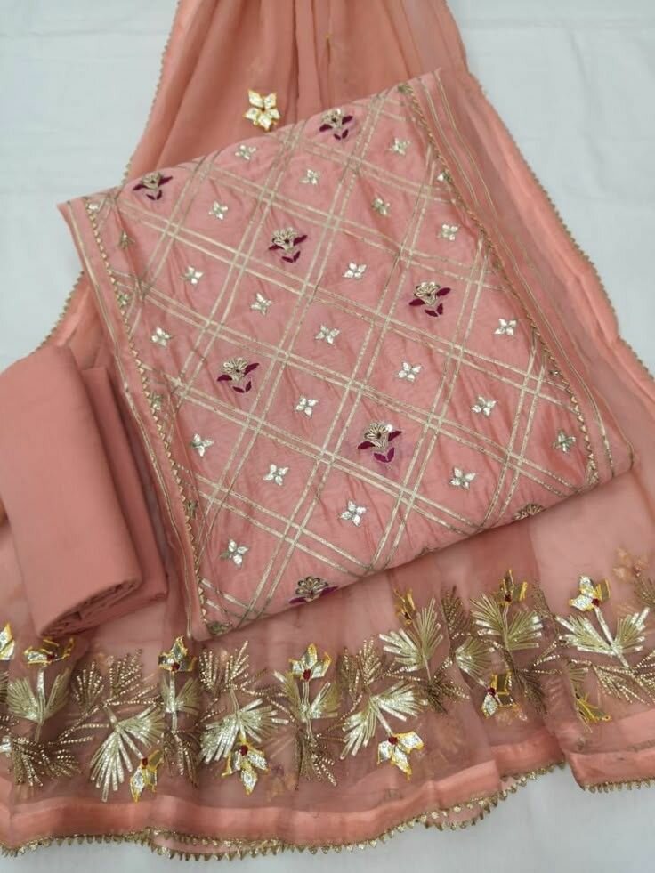 Embroidered Organza Women's Suit Set-3 Pcs in peach