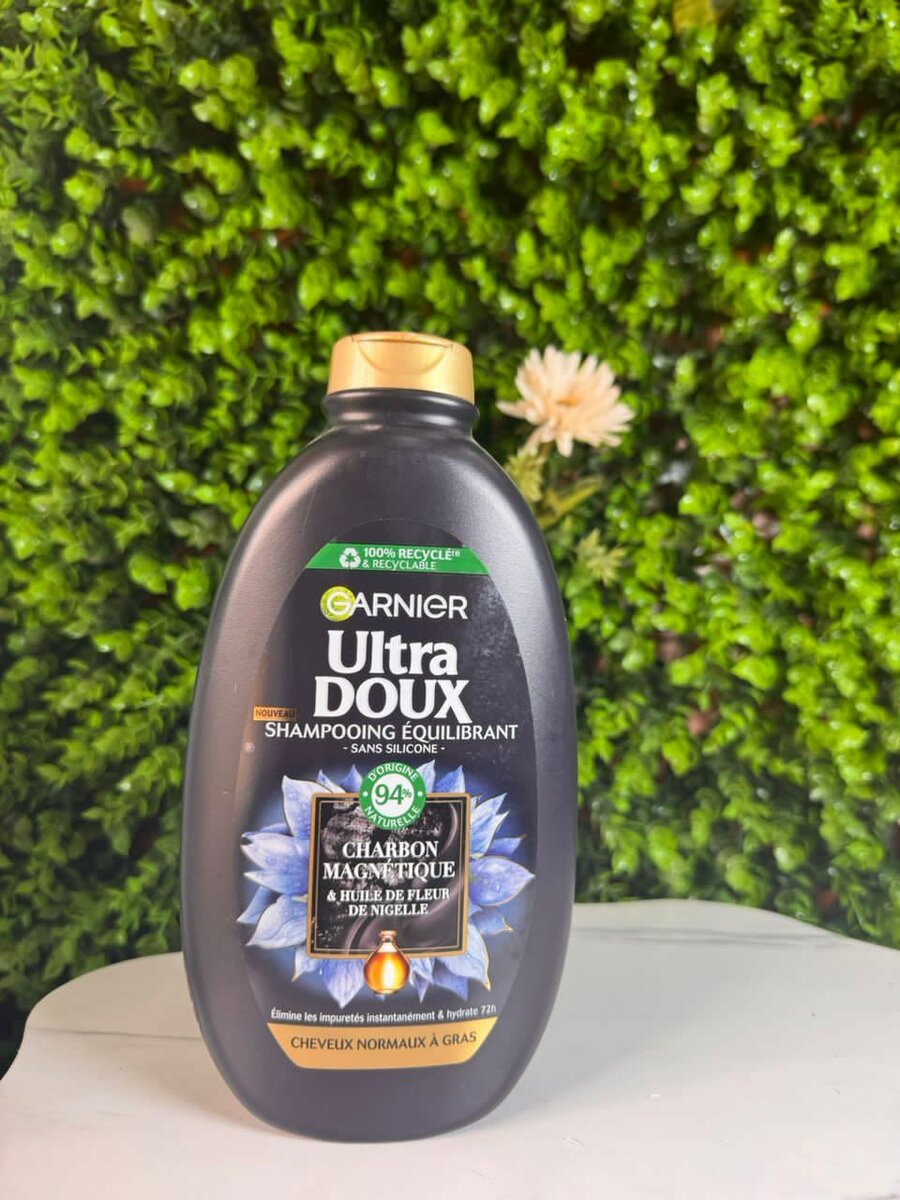 Le shampoing équilibrant Garnier Ultra Doux est idéal pour cheveux normaux à gras.