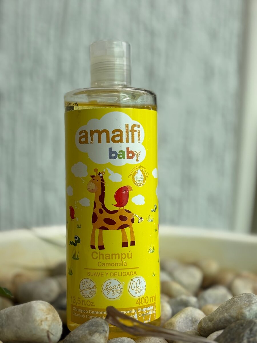 Découvrez le shampooing camomille pour bébé d'Amalfi. Formulé délicatement pour la peau sensible des tout-petits, il nettoie tout en douceur et laisse les cheveux soyeux. Vegan et naturel, idéal pour un soin quotidien en toute sécurité.
